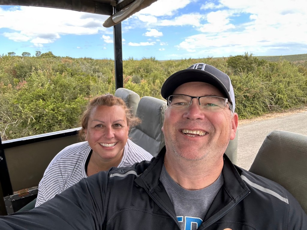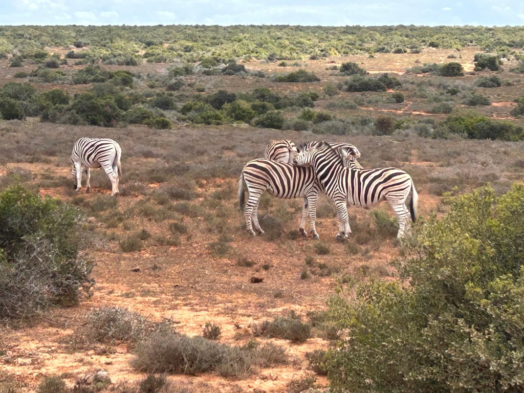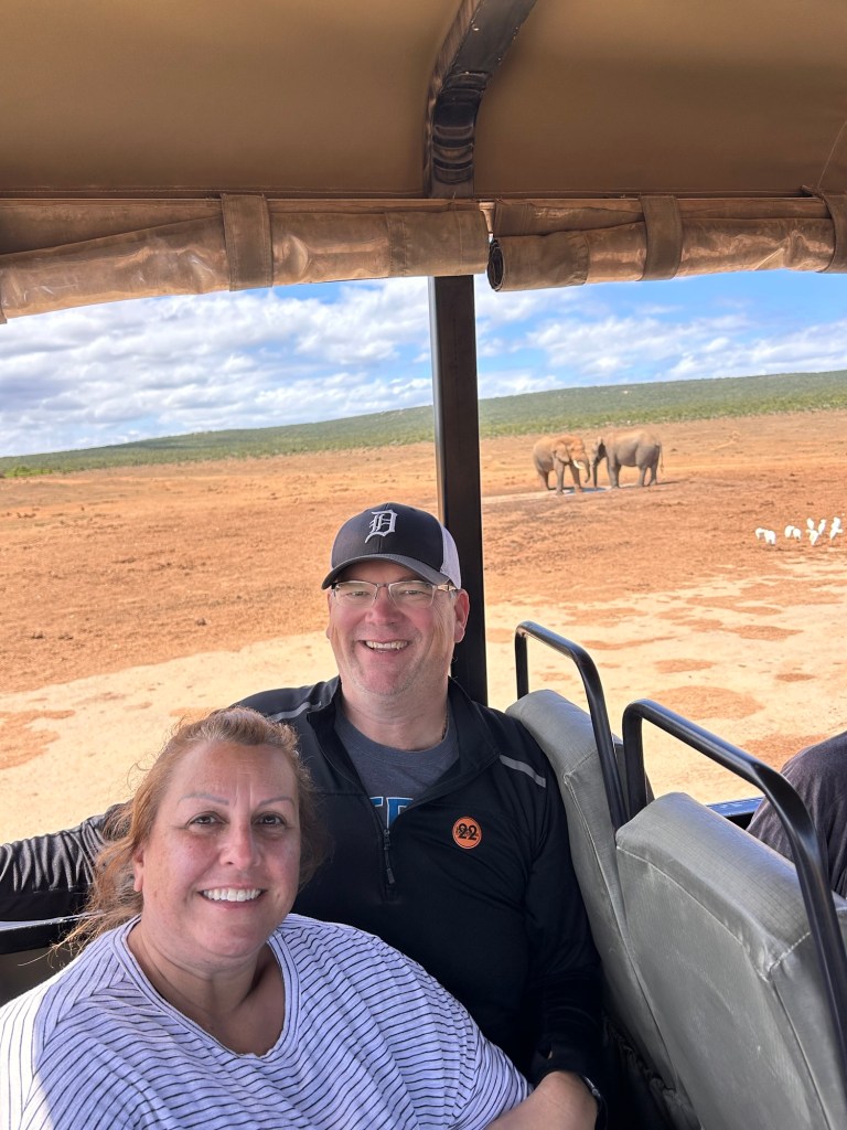 Our guide told us over 100 years ago the farmers planted citrus crops. However, the elephants 🐘 loved the citrus and destroyed much of the crops. So what did the humans do? Destroyed the elephants (not sure how anyone could do that). That was not acceptable, so the compromise was to build a national park elephant sanctuary. To help keep the elephants on the land, the farmers even gave the elephants the damaged citrus! The park is over 100,000 acres and now has over 150 elephants from the original 16 it started with! There are also 🦓 zebras, warthogs, lions 🦁, and water buffalo (we saw them all)!