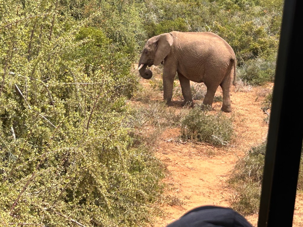 We were most looking forward to our visit to the elephant sanctuary today and it did not disappoint. We took a bus about an hour out of town to visit Addo Elephant National Park.