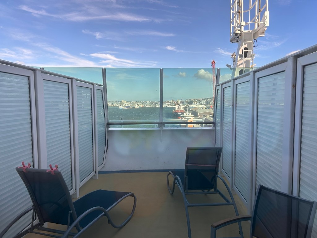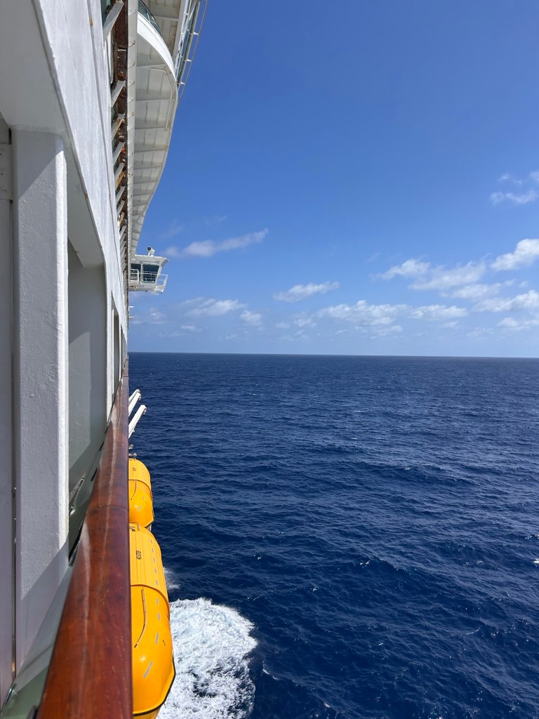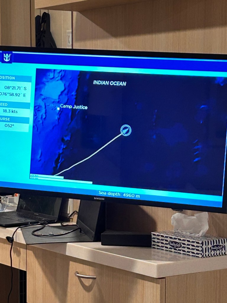 We officially started the 2nd cruise – 17 nights from Cape Town, South Africa to Singapore! We are on the same ship – Adventure of the Seas – but have a new room. We are now on Deck 11 overlooking the FRONT of the ship. Our room is updated and the balcony is HUGE!