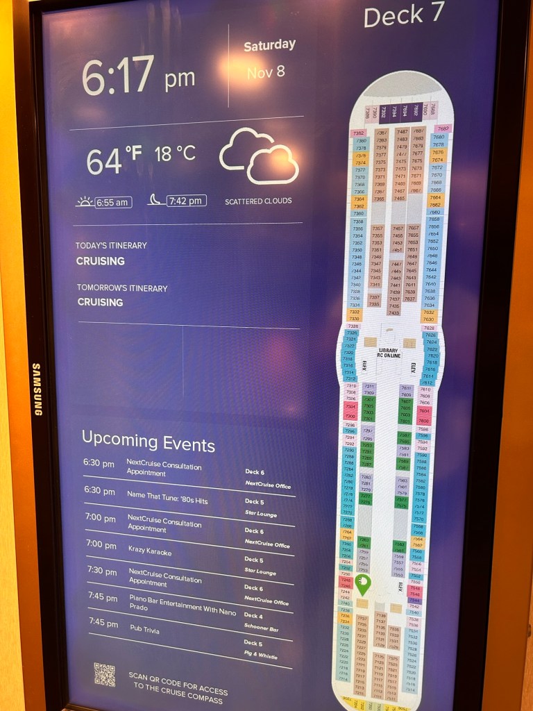 We went to the Quest show the other night with our cruising buddies – it was crazy, pure entertainment. 🤣😂 The game is full of different quests the team captains have to do. The audience is your team. These are not simple quests – they include things like “Find 3 men’s pants” or “Find the tallest and shortest men on your team” or “Do the worm.” We were laughing at the silliness of it all! And, no, Adam did not participate as the tallest man (even though he was). He is glad that he didn’t because the tallest man had to be a stripper pole for the shortest man!! Ah-hahahaha!