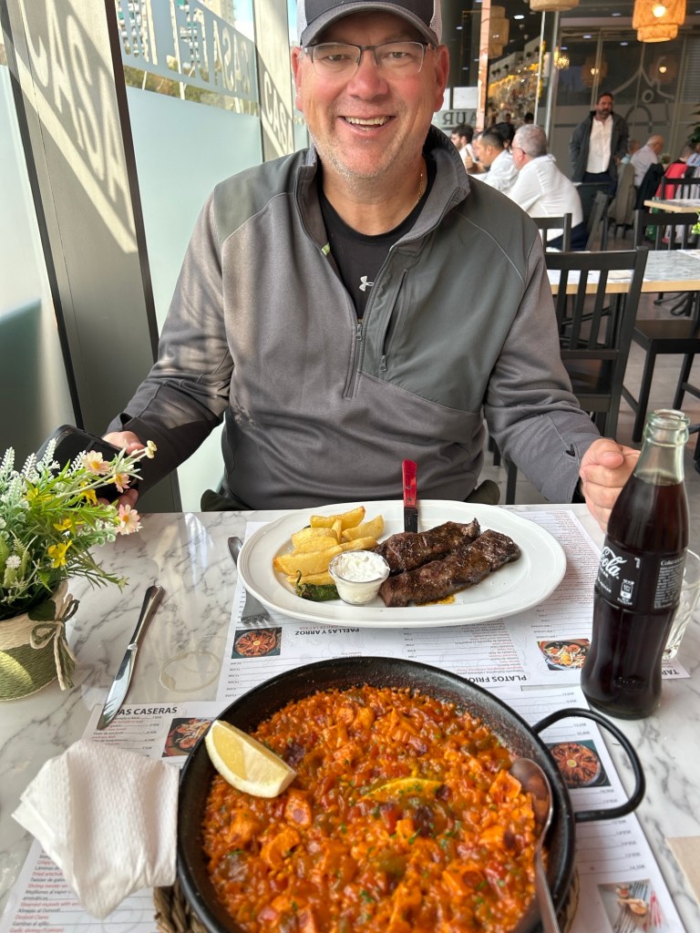 After debating our dinner options for a bit we settled on crispy Camembert cheese tapas, a grilled skirt steak, and a paella de pollo!